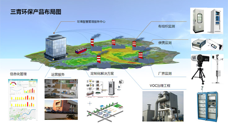 浙江三青環保科技有限公司,根據客戶的需求,可以從有組織監測、便攜監測、廠界監測、VOC工程治理、定制化解決方案,運營服務、信息化管理七大類產品方向為客戶提供服務。