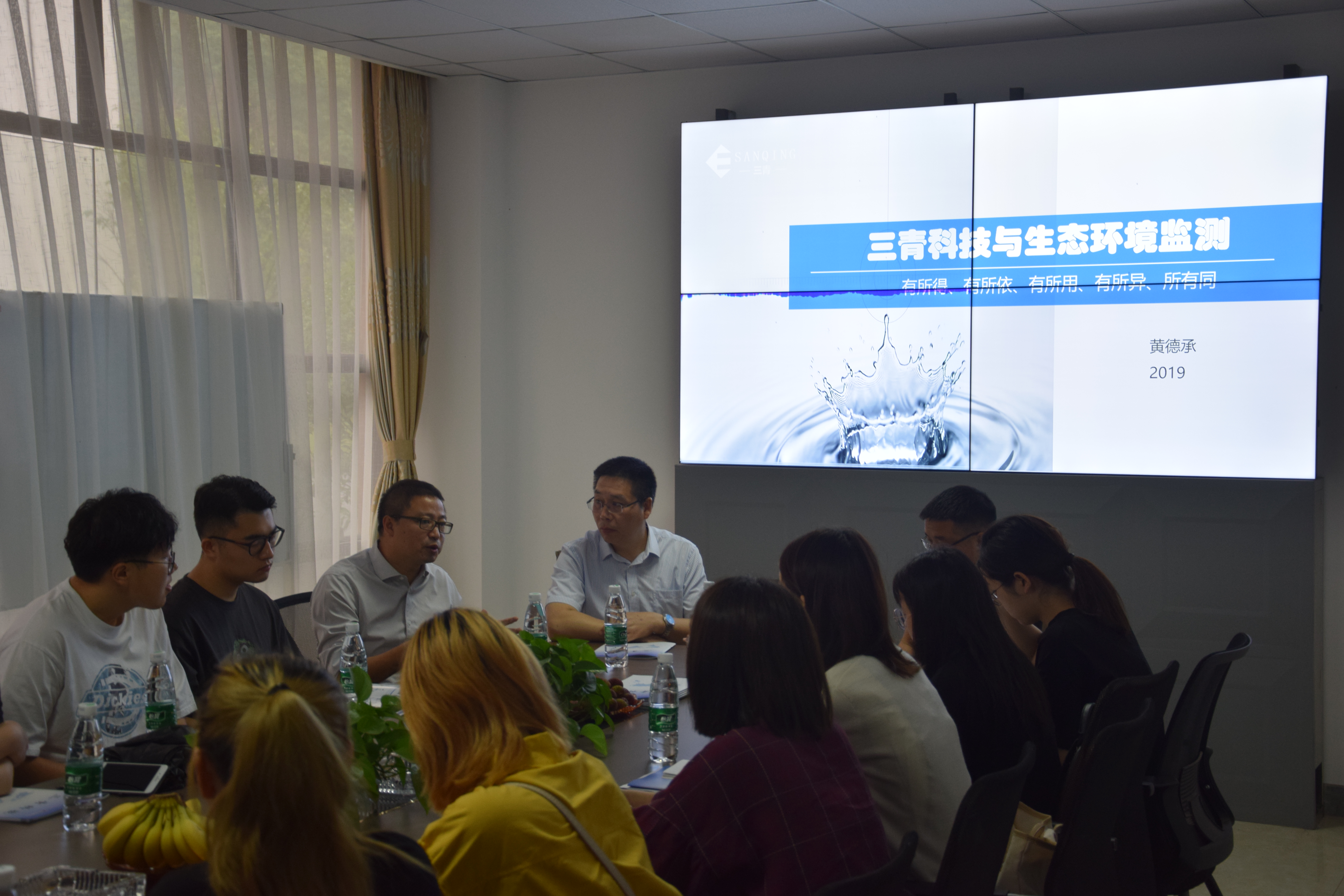 余總和黃總向師生介紹環(huán)保行業(yè)與公司概況。